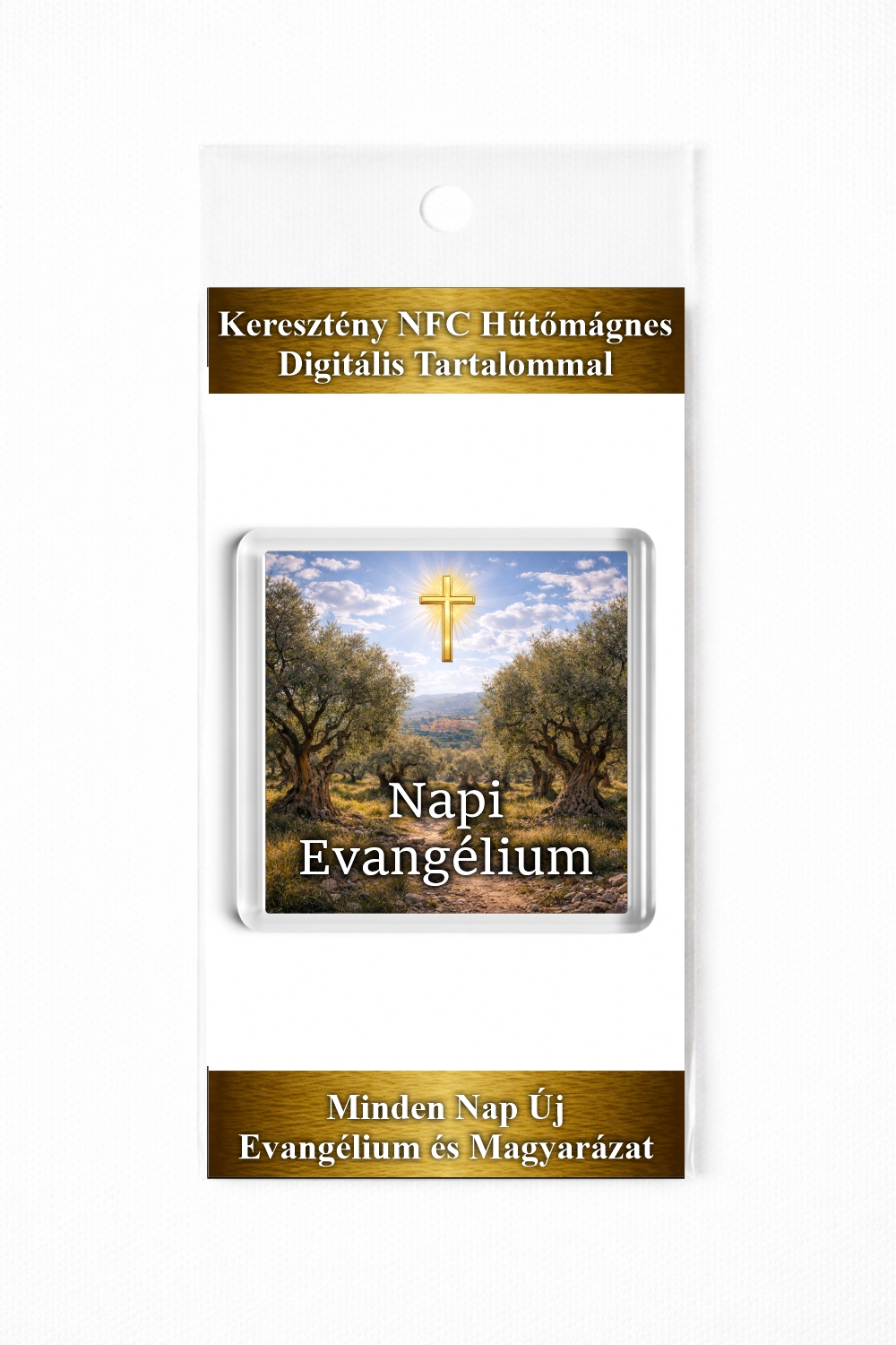 A Napi evangélium – NFC hűtőmágnes használata rendkívül egyszerű: érintse hozzá mobiltelefonját a hűtőmágneshez, és készüléke automatikusan megnyitja a termékhez tartozó weboldalt. Az oldal egy letisztult, könnyen áttekinthető digitális felületen jelenik meg, ahol minden nap egy új evangéliumi részlet olvasható az Újszövetségből.