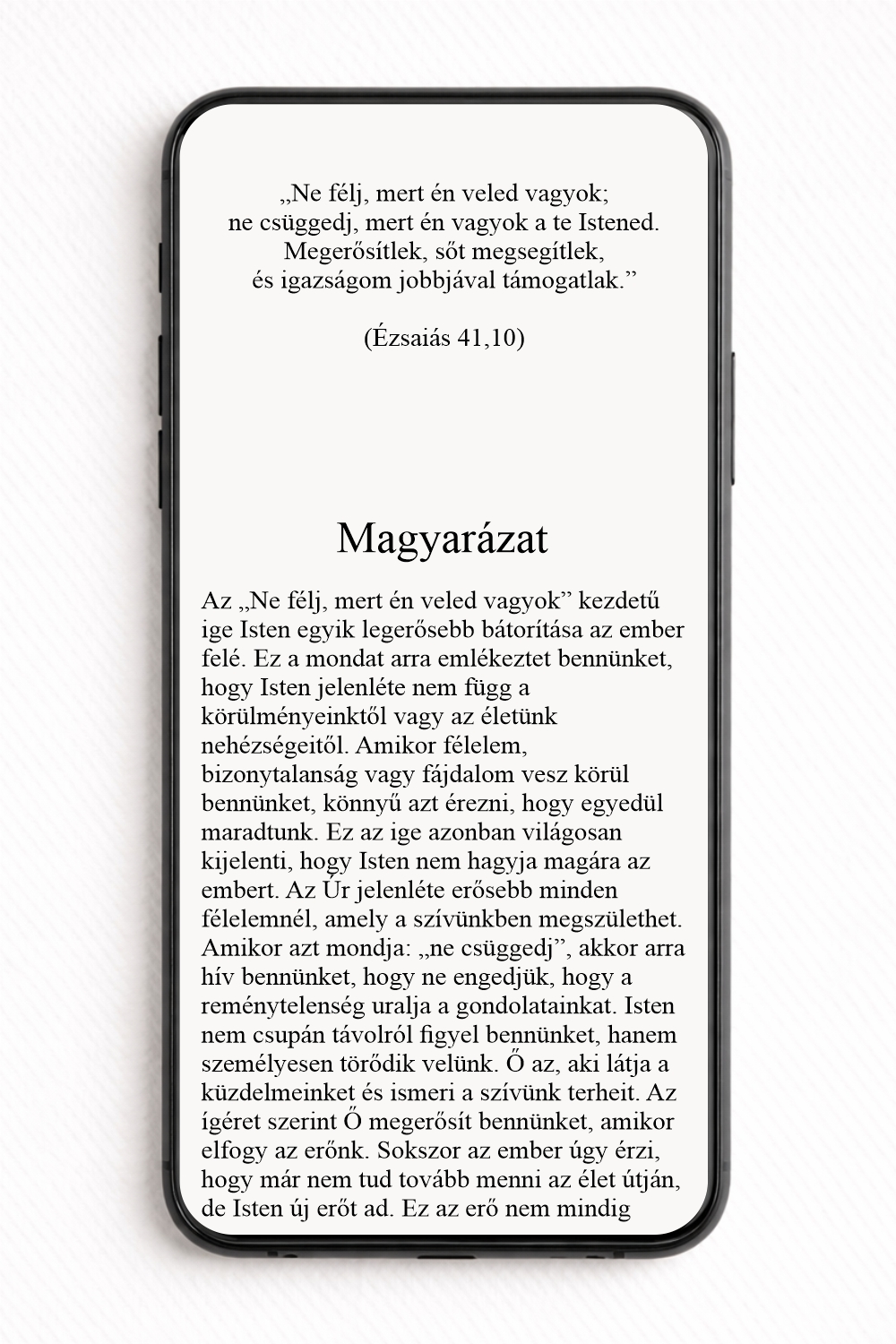 A képernyőn az adott napi evangéliumi idézet jelenik meg, amely segíthet elmélyülni a Szentírás üzenetében. Az idézett szöveg alatt egy rövid magyarázat is olvasható, amely segít jobban megérteni az evangélium mondanivalóját és annak mindennapi életre vonatkozó jelentését.